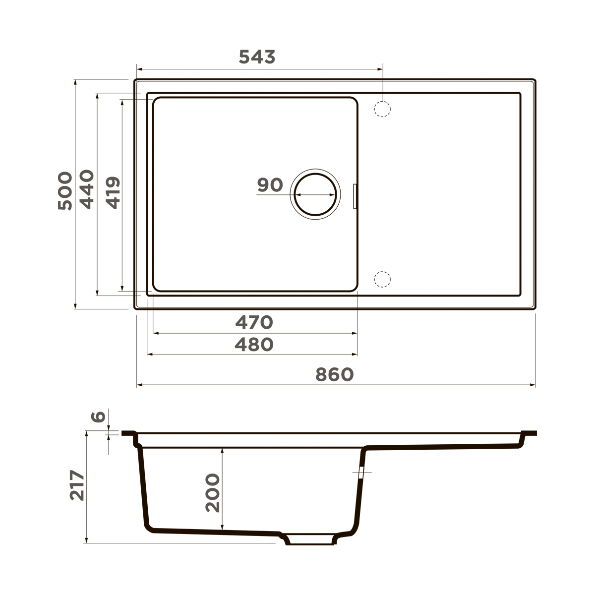 • Материал выдерживает высокие температуры до 280°С (но не стоит ставить на поверхность мойки горячие сковородки и кастрюли, т.к их температура может достигать 500°С);