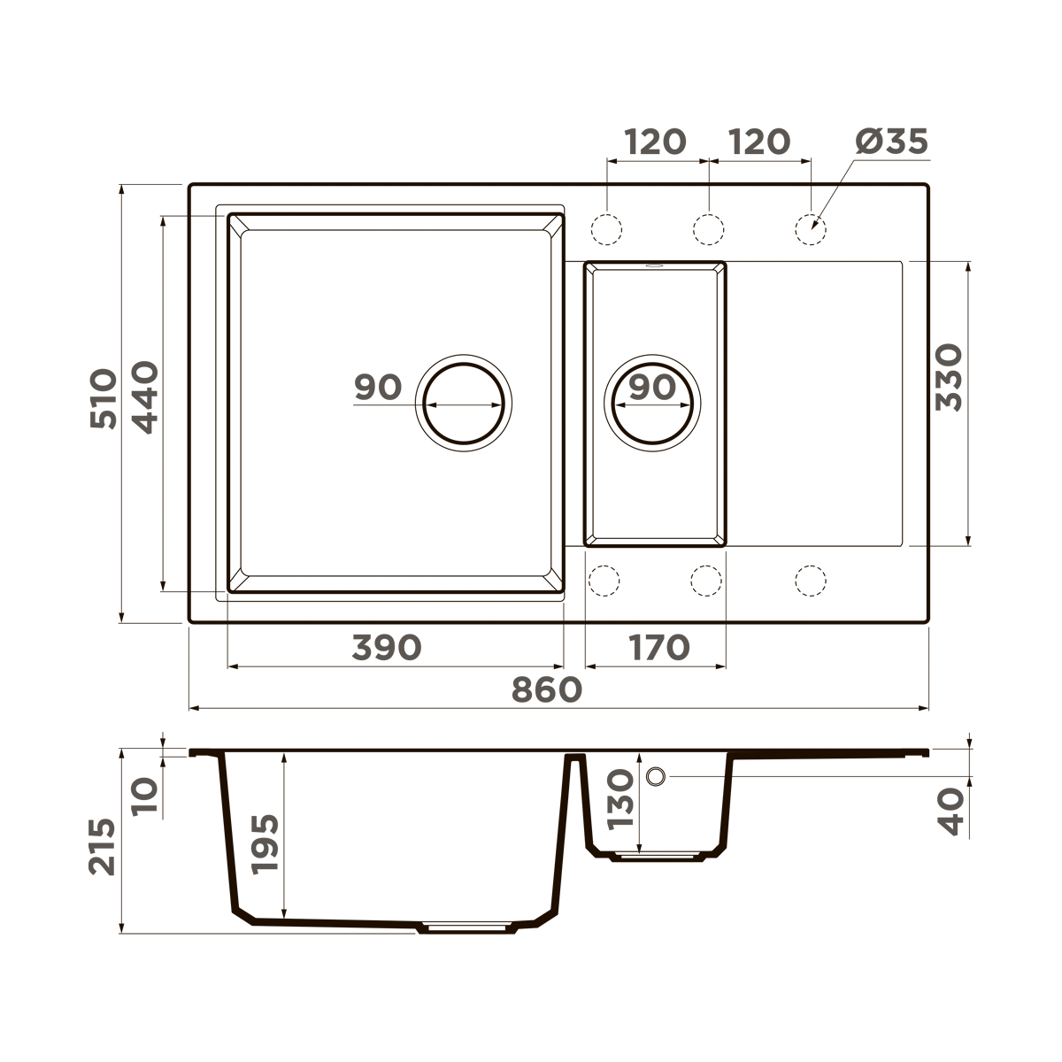 • Помимо гранита, в состав материала входит молотый кварц мельчайших размеров, которому характерны непревзойденная прочность и устойчивость к природным и химическим воздействиям. Свойства данного компонента вместе с долговечностью гранита обеспечивают мойке прочность и делают её устойчивой к любым механическим повреждениям: деформациям, сколам;
