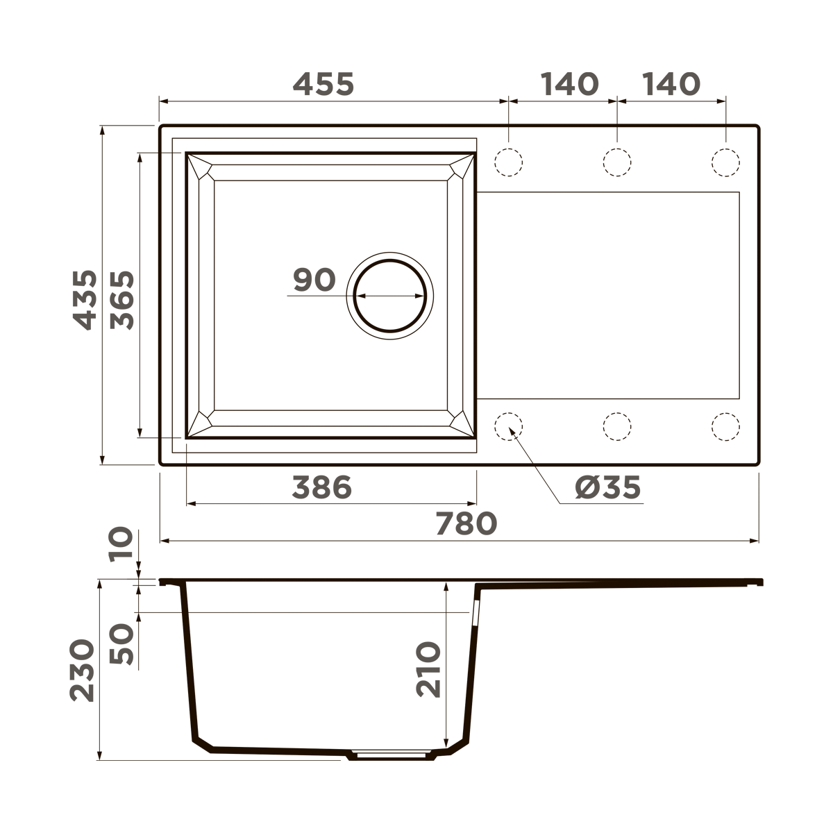 • Материал выдерживает высокие температуры до 280°С (но не стоит ставить на поверхность мойки горячие сковородки и кастрюли, т.к их температура может достигать 500°С).