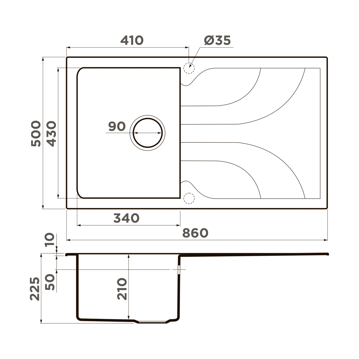 • Материал выдерживает высокие температуры до 280°С (но не стоит ставить на поверхность мойки горячие сковородки и кастрюли, т.к их температура может достигать 500°С).