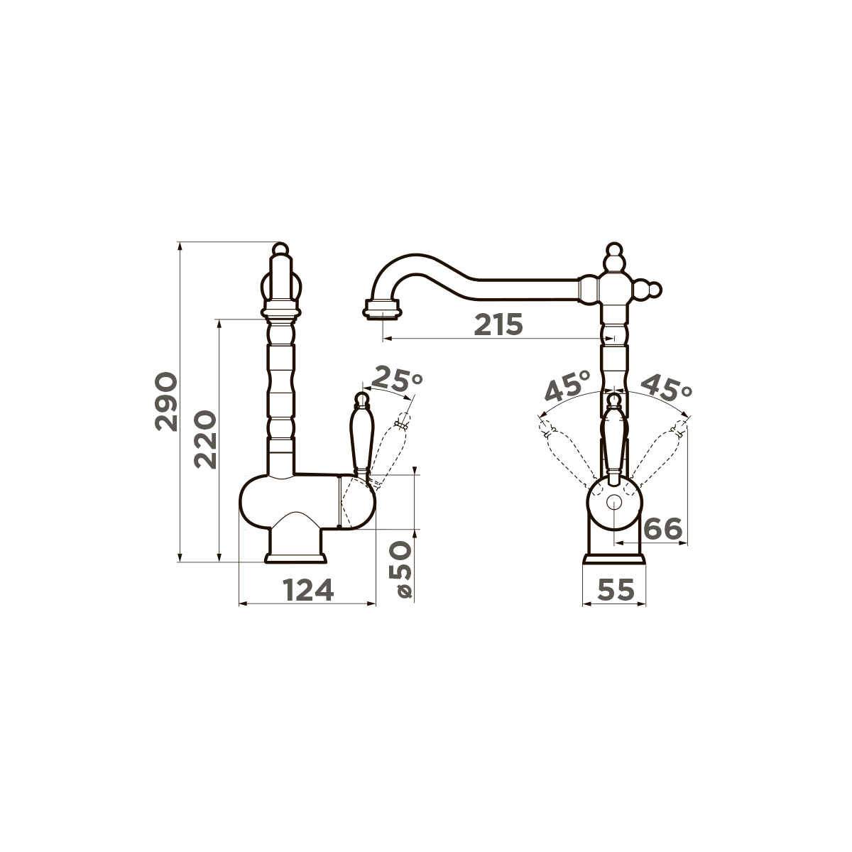 - Классический дизайн и удобство использования благодаря высокому изливу.