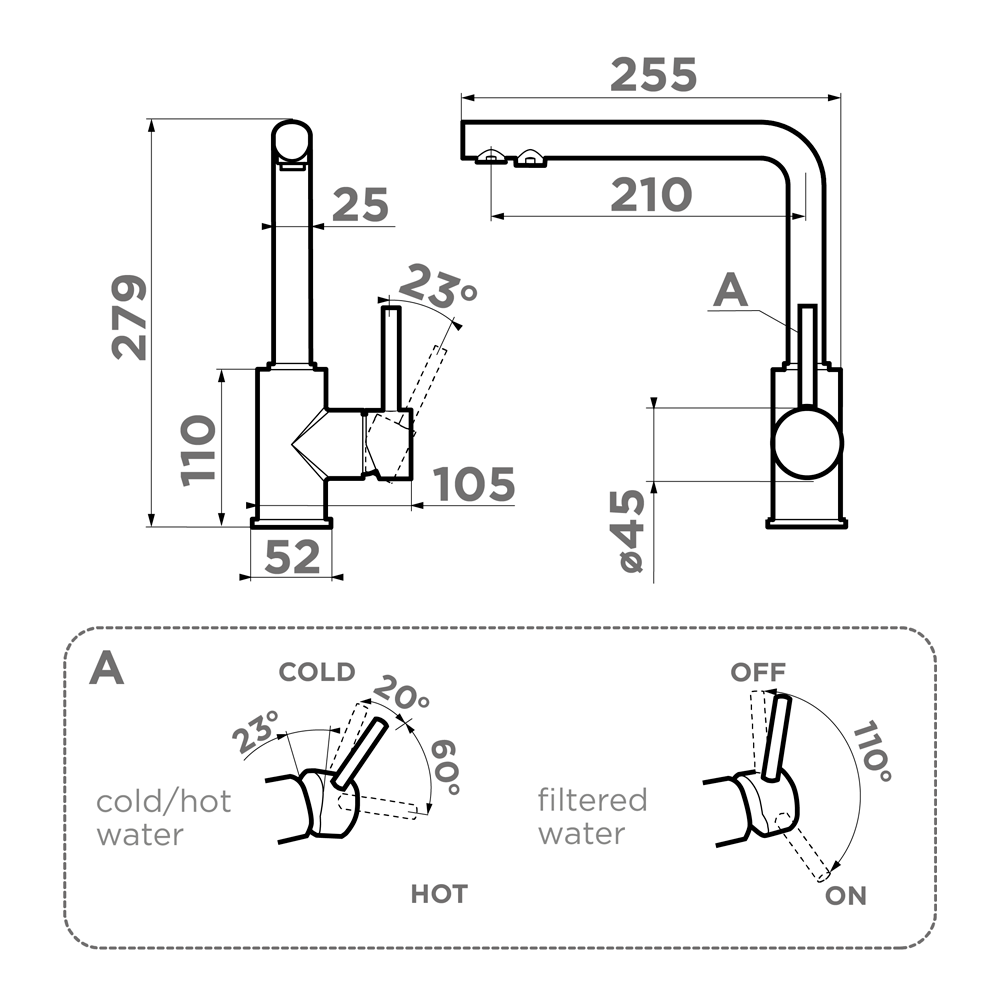 • Новая удобная технология системы ручки 2 в 1 Multi позволяет переключить с водопроводной на фильтрованную воду в одно касание.